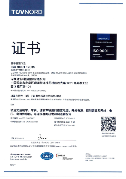 深圳通業(yè)科技股份有限公司(以下簡稱“公司”)成立于2000年,是一家專業(yè)從事軌道交通電氣裝備產(chǎn)品研發(fā)、生產(chǎn)、銷售及維保服務(wù)的國家級(jí)高新技術(shù)企業(yè)。公司于2021年登陸創(chuàng)業(yè)板成功上市(股票簡稱:通業(yè)科技,股票代碼:300960);公司總部位于深圳,下設(shè)廣州子公司、石家莊子公司、成都子公司、武漢子公司、長春子公司及全國多地檢修服務(wù)站,銷售和服務(wù)網(wǎng)絡(luò)遍及全國。